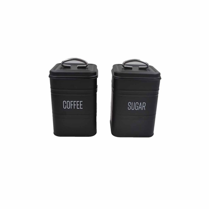 Μεταλλική αρτοθήκη υψηλής αισθητικής και ποιότητας μαζί με δύο δόχεία αποθήκευσης καφέ και ζάχαρης.