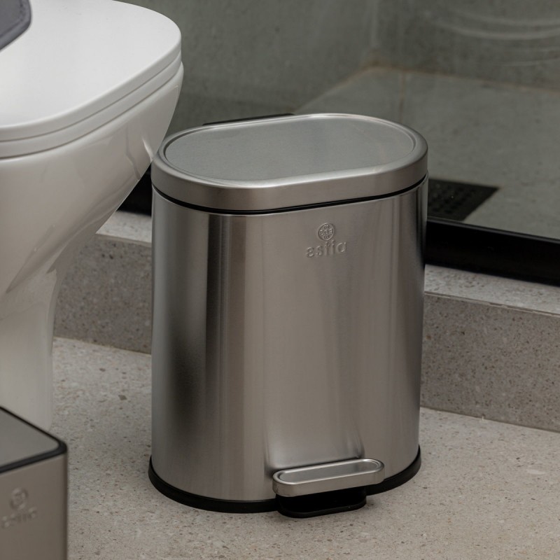 Η σειρά Ovoid της Estia συνδυάζει την πρακτικότητα με την κομψότητα, ιδανική για κάθε μπάνιο. Τα χαρτοδοχεία διαθέτουν μεταλλικό σώμα από ατσάλι 0.30mm και πεντάλ που εξασφαλίζουν σταθερότητα και αντοχή. Η λειτουργία Soft Close προσφέρει ήσυχο και απαλό κλείσιμο, ενώ το αποσπώμενο εσωτερικό πλαστικό δοχείο διευκολύνει τον καθαρισμό.