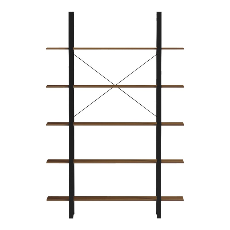 230-000161 Βιβλιοθήκη-Ραφιέρα Varous pakoworld καρυδί-μαύρο μέταλλο 120x28x180εκ