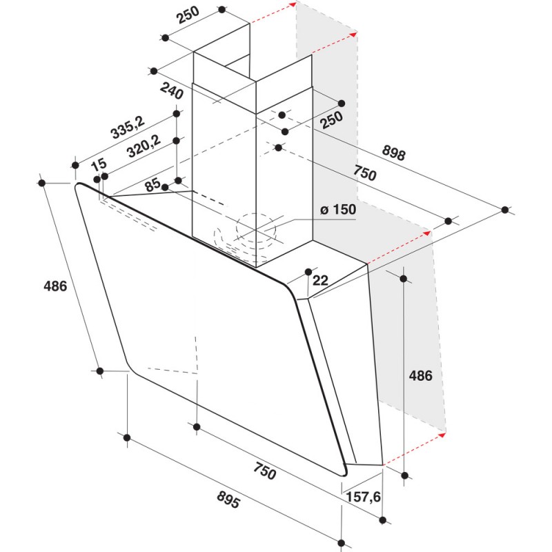 Ο απορροφητήρας της εταιρείας Whirlpool τοποθετείται στον τοίχο. Είναι σχεδιασμένος με ένα διακοσμητικό που καλύπτει τη σωλήνα εξαγωγής αέρα και μοιάζει με καμινάδα.