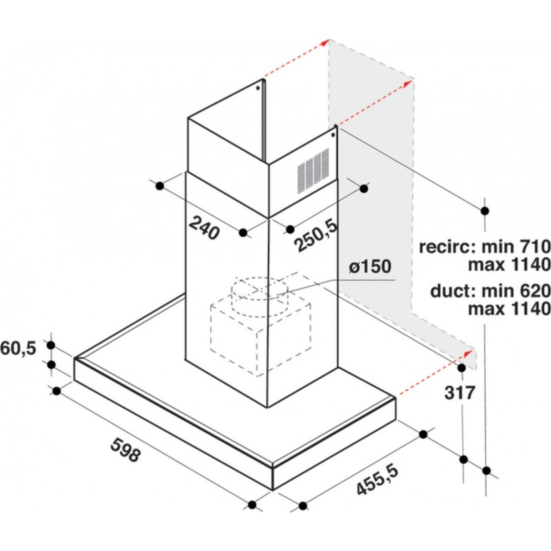 Απορροφητήρας Επιτοίχια καμινάδα 60 εκ.