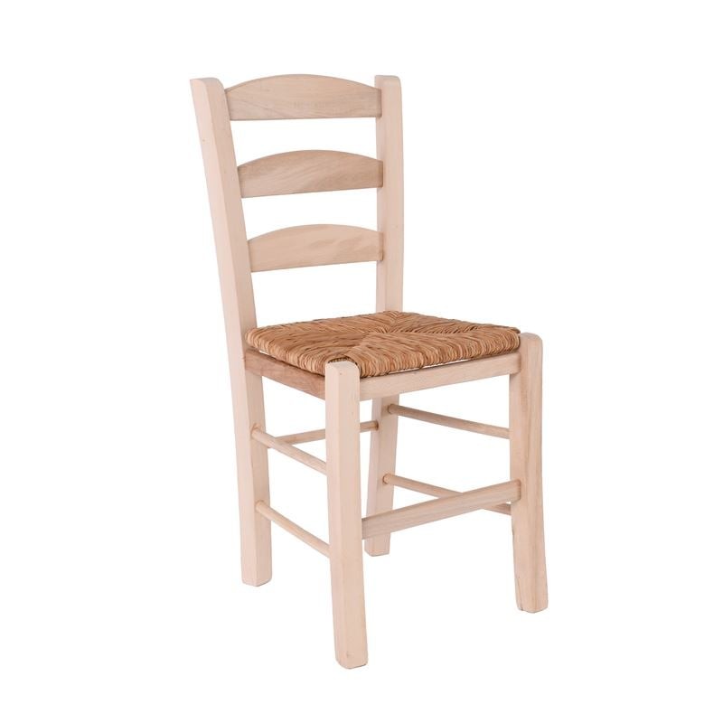 ΣΚΥΡΟΣ Καρέκλα Άβαφη Οξιά με Ψάθα Αβίδωτη