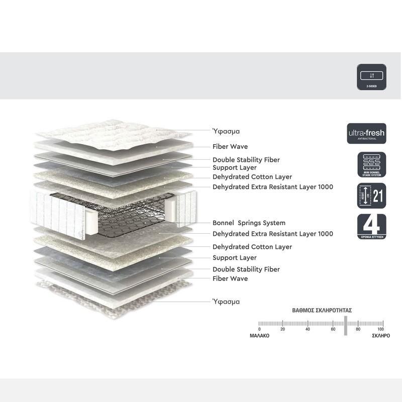• Τύπος: δύο όψεων - αντιβακτηριακό (Ultra Fresh)
