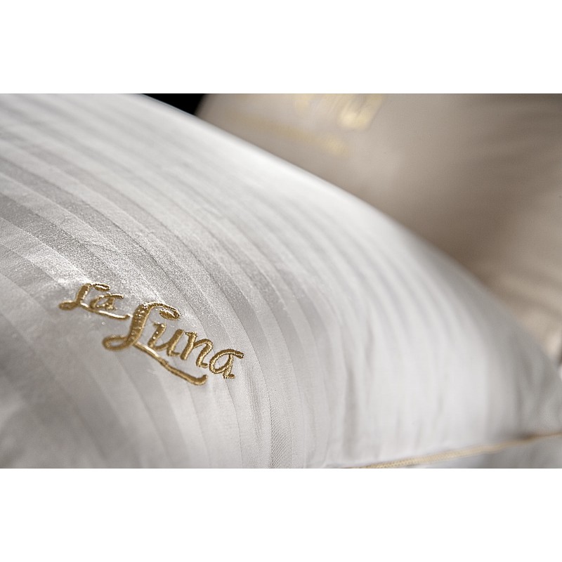 Ειδικά διαχωρισμένο πουπουλένιο μαξιλάρι χήνας σε 3 θαλάμους με ειδική αντιαλλεργική επεξεργασία.