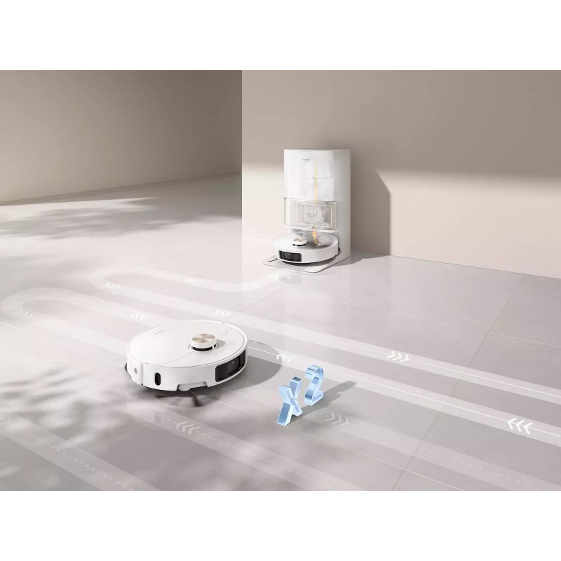 Ο κάδος 3.2 λίτρων αδειάζει αυτόματα στη βάση, εξοικονομώντας χρόνο και αποφεύγοντας κάθε επαφή με τη σκόνη. Η σκούπα επιστρέφει μόνη της στη βάση και μπορείς να προγραμματίσεις αυτόματο καθαρισμό με βάση τη βρωμιά και τις ανάγκες σου, χωρίς να χρειάζεται να την παρακολουθείς.