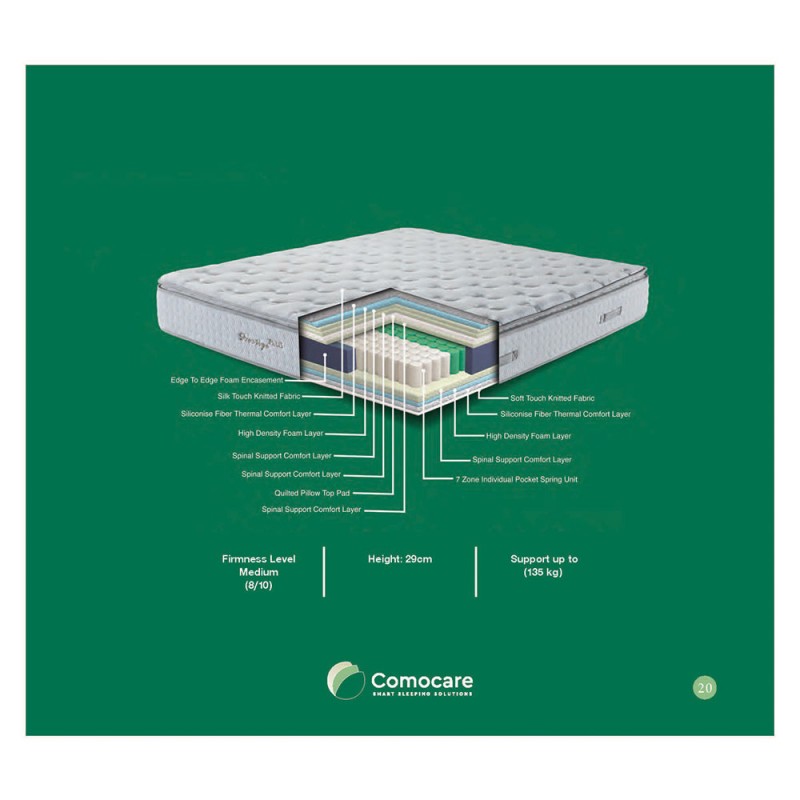 Είναι η τεχνολογία του 21ου αιώνα. Τα ελατήρια 7 ζωνών στήριξης είναι τοποθετημένα σε χωριστές υφασμάτινες θήκες και δεν είναι ενωμένα μεταξύ τους. Αυτή η τεχνική επιτρέπει στα ελατήρια να λειτουργούν το ένα ανεξάρτητα από το άλλο, και έτσι οι κινήσεις του ενός ατόμου να μην ενοχλούν το δεύτερο άτομο που ξαπλώνει στην άλλη πλευρά του κρεβατιού. Επιπλέον, οι 7 ζώνες στήριξης εγγυώνται την σωστή κατανομή του βάρους προσφέροντας απαράμιλλη αίσθηση ξεκούρασης.