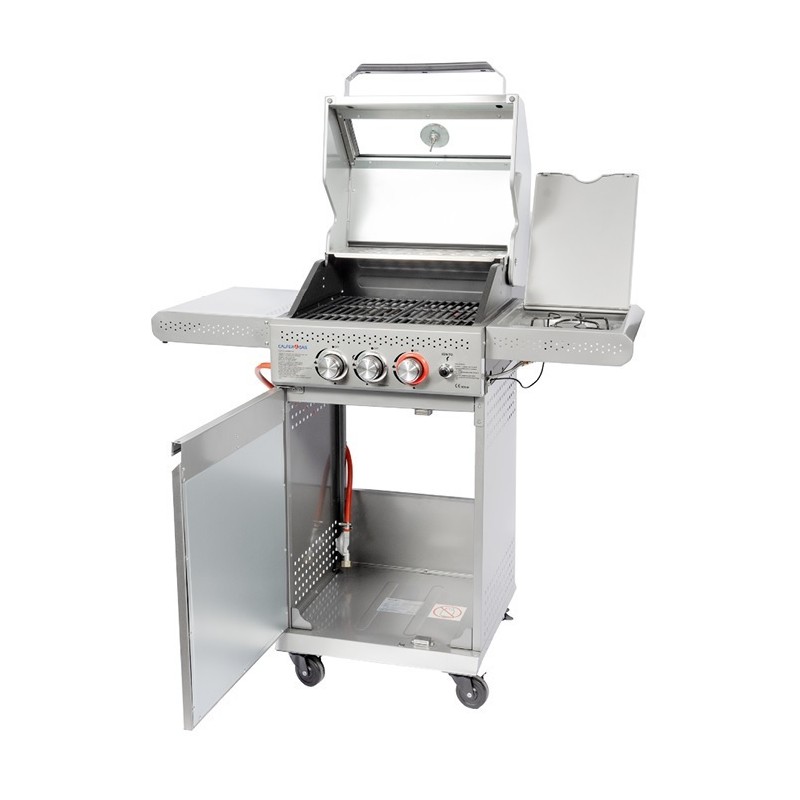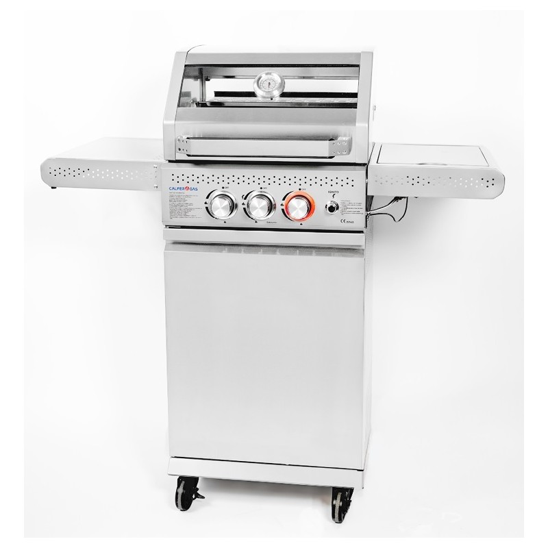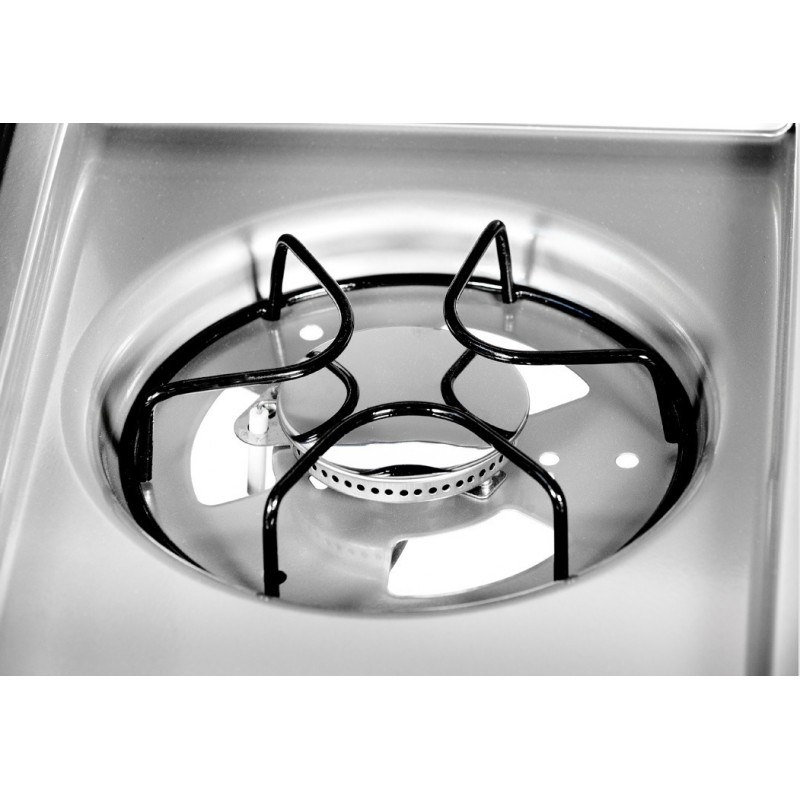 Διαθέτει 2 κεντρικούς καυστήρες Inox συνολικής ισχύος 7 kW (3 kW + 4 kW sear burner) και πλαϊνή εστία Inox 2,5 kW, προσφέροντας συνολική ισχύ 9,5 kW για γρήγορο και ομοιόμορφο ψήσιμο. Η κατανάλωση φτάνει τα 691 gr/h και η ανάφλεξη είναι αυτόματη πιεζοηλεκτρική για εύκολη χρήση. Το σώμα είναι χαλύβδινο με γκρι ηλεκτροστατική βαφή, ενώ διαθέτει 2 στενές μαντεμένιες σχάρες 6 χιλ. και σχάρα συντήρησης INOX, εξασφαλίζοντας επαγγελματικά αποτελέσματα στο ψήσιμο και τη διατήρηση θερμοκρασίας.