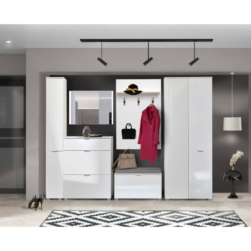 Έπιπλο εισόδου στήλη ραφιέρα - ντουλάπα με καθρέφτη, 5 ραφιών, 6 επιπέδων αποθήκευσης. Έχει 2 πόρτες , και μεταλλικό χερούλι, για καλύτερη λειτουργία. Σας παρέχει και μεταλλική πτυσσόμενη κρεμάστρα για επιλογή χρήσης της ντουλάπας. Ο καθρέφτης μας δίνει μια ιδιαίτερη αισθητική και χρηστική αξία. Συνδυάστε το με τα υπόλοιπα μοντέλα - στοιχεία της σειράς elegance εισόδου και δημιουργήστε το δικό σας μοναδικό αισθητικό και λειτουργικό αποτέλεσμα.Χρησιμοποιώντας καινούργια υλικά αρίστης ποιότητας, μοριοσανίδα FUNDERMAX, μηχανισμοί Hettich, τεχνολογία Furnika, σας προσφέρουμε μια ολοκληρωμένη σειρά προϊόντων Elegance απόλυτης ποιότητας, μοντέρνας αισθητικής, φρέσκων χρωμάτων, οικονομικής τιμής, άριστη σχέση τιμής ποιότητας. Το σπίτι μας είναι ELEGANCE by Matis.