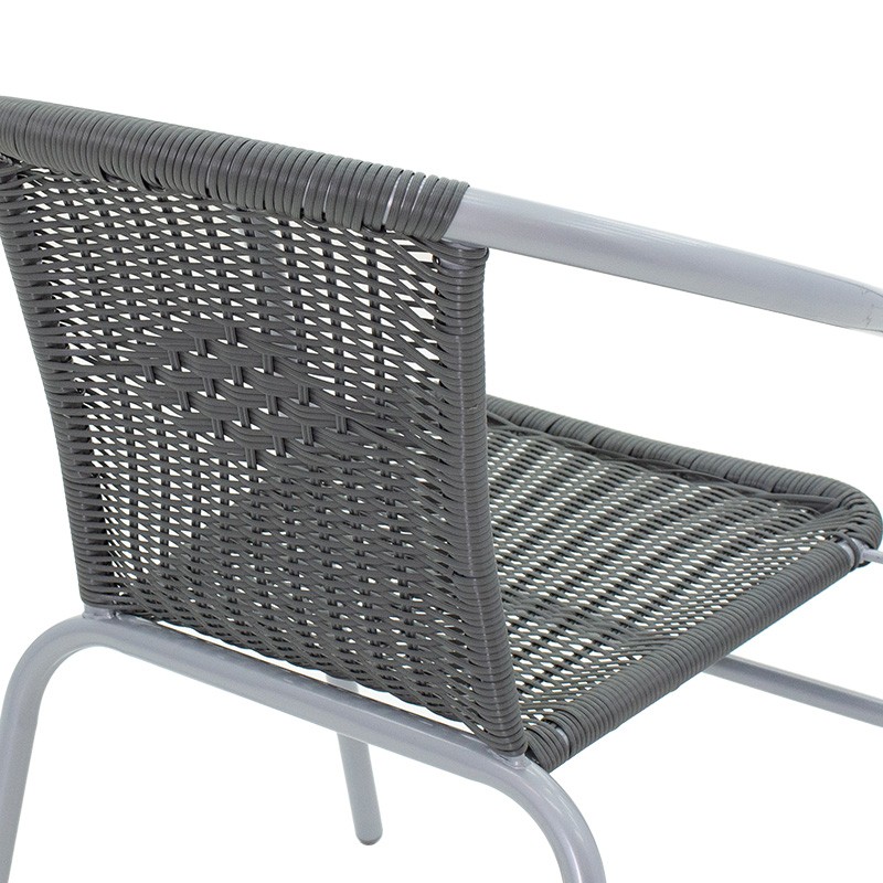 Σταθερός σκελετός από μέταλλο με αντοχή στην καταπόνηση και στη φθορά. Κυρίως σώμα έδρας-πλάτης από εξαιρετικής ποιότητας PE rattan.