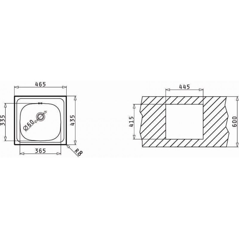Ανοξείδωτος ένθετος νεροχύτης, μία γούρνα, INOX Σατινέ PYRAMIS Basic μοντέλο E 33 (46,5X43,5).