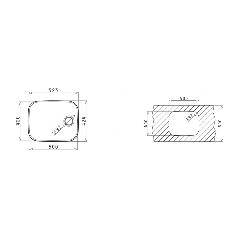 Pyramis Iris 1B Ανοξείδωτος Υποκαθήμενος Νεροχύτης Γυαλισμένος Με 1 Γούρνα 50x40 cm