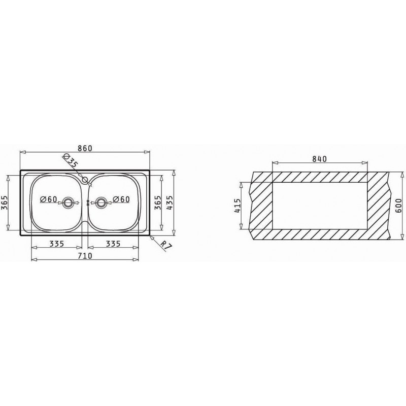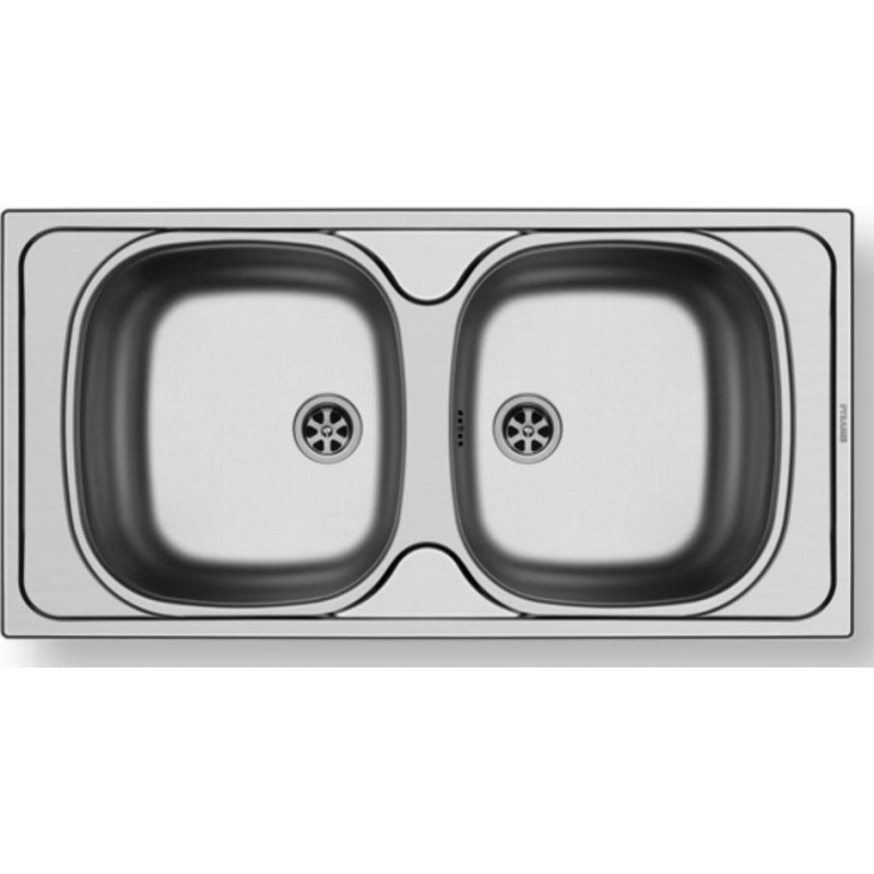 Ανοξείδωτος ένθετος νεροχύτης, δύο γούρνες, INOX Σατινέ PYRAMIS Basic μοντέλο E 33 / 33 (86X43,5).