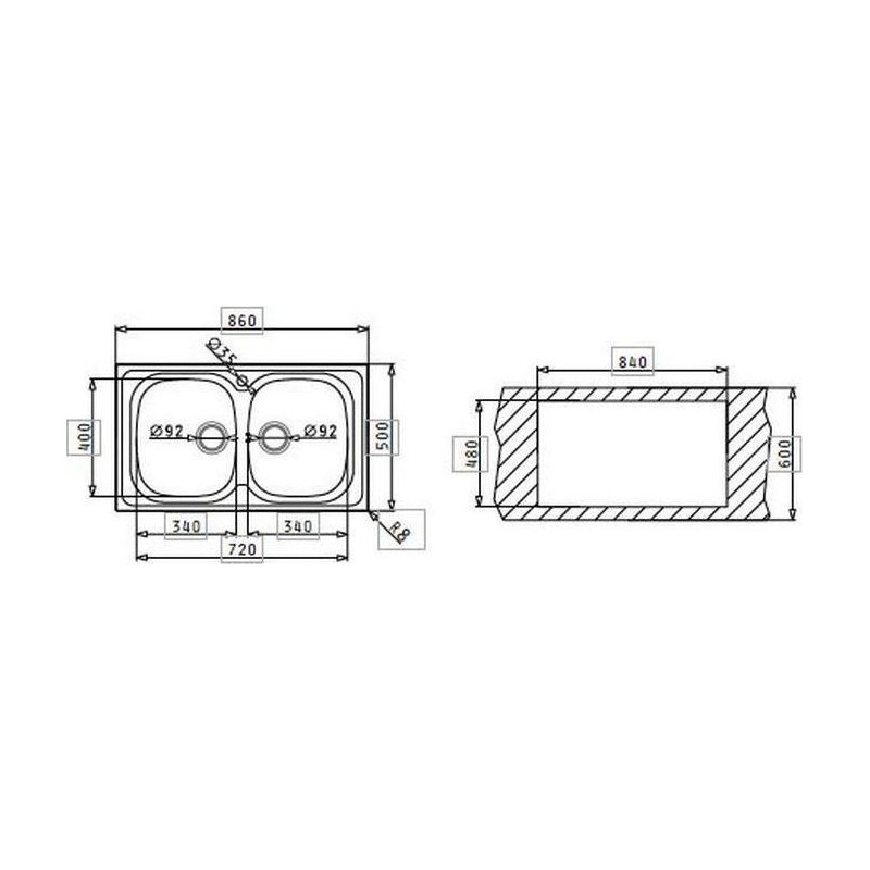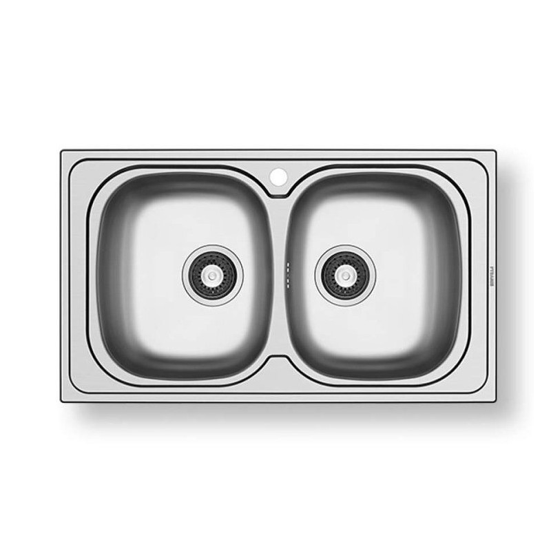 Pyramis Sparta 2B Ανοξείδωτος Ένθετος Νεροχύτης Σατινέ Με 2 Γούρνες 86x50 cm