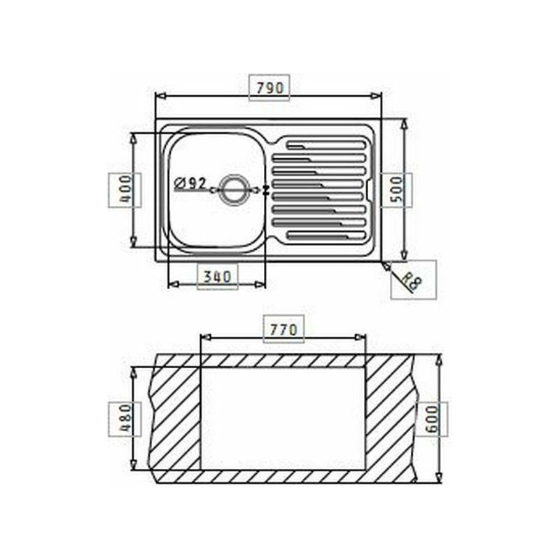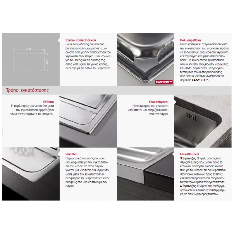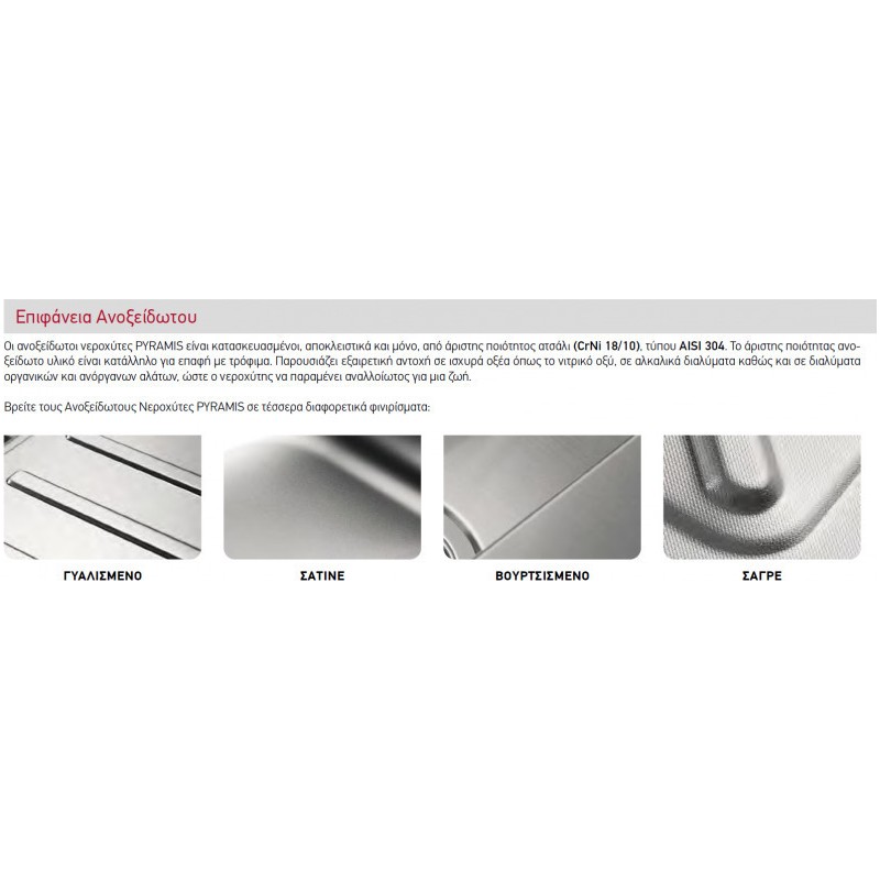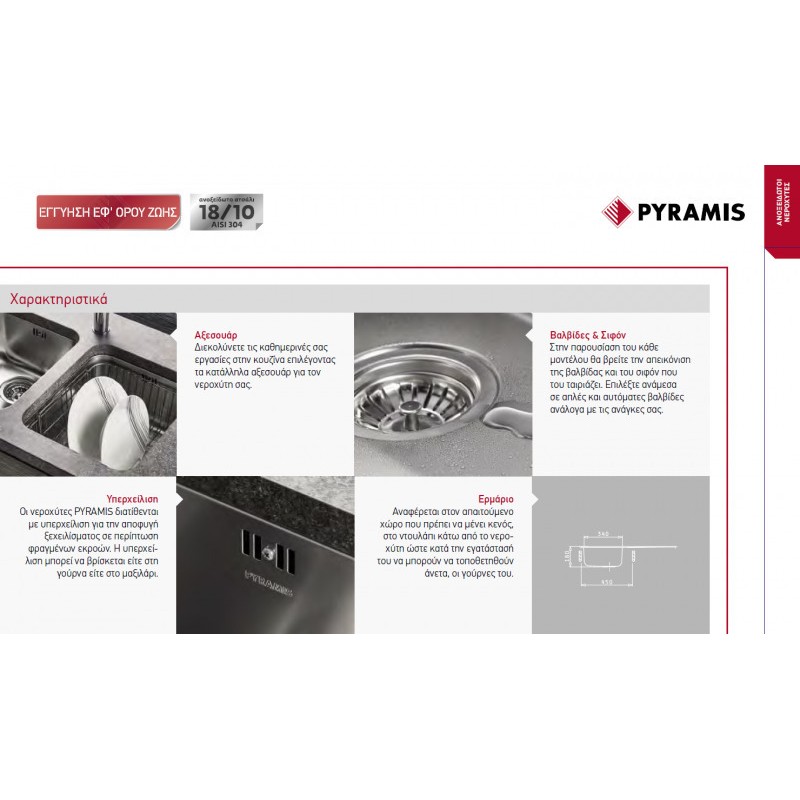 Pyramis Amaltia 1B 1D Ανοξείδωτος Αντιστρεφόμενος Ένθετος Νεροχύτης Με 1 Γούρνα και Ποδιά 79x50 cm