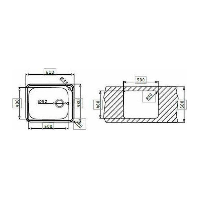 Ο νεροχύτης Pyramis εντοιχίζεται σε ερμάριο 60 cm.