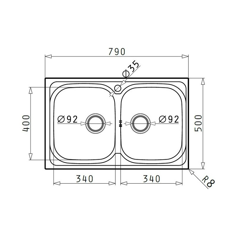 Pyramis Amaltia 2B Ανοξείδωτος Ένθετος Νεροχύτης Με 2 Γούρνες 79x50 cm