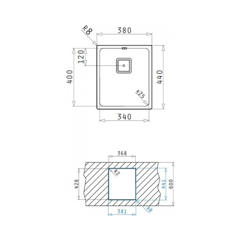 Pyramis Lume 1B Ανοξείδωτος Ισόπεδος Λείος Νεροχύτης Με 1 Γούρνα 34x40 cm.