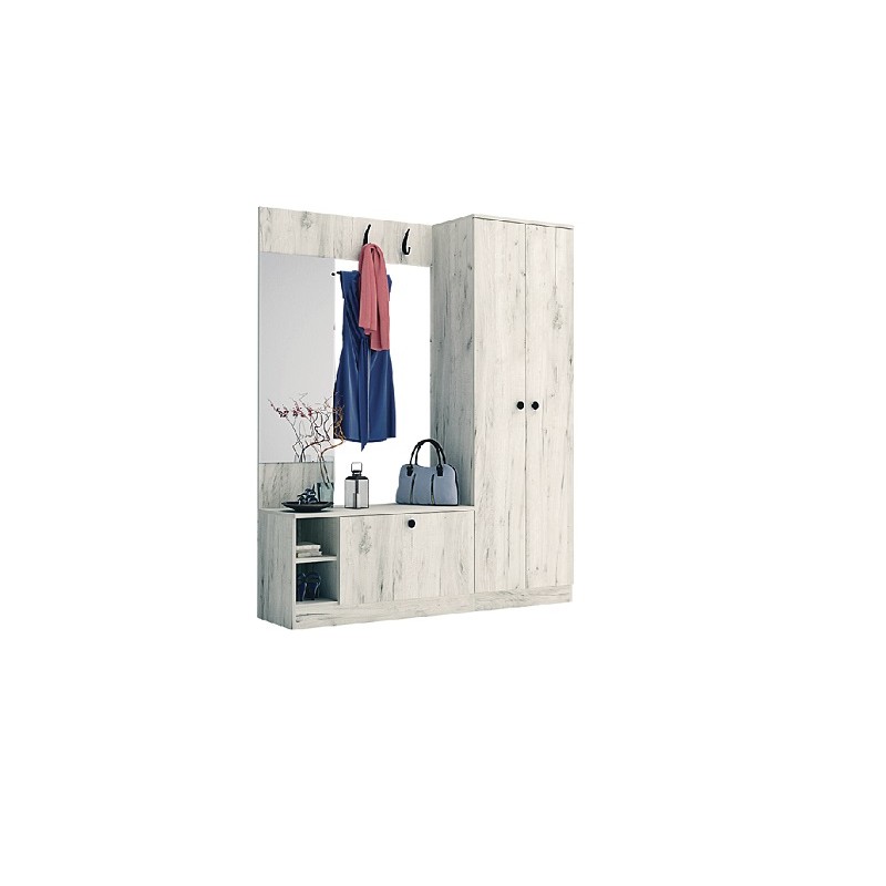 Σύνθεση εισόδου Marea2 είναι ένα πάνελ με καθρέφτη, κρεμάστρες, κλειστό ντουλάπι με αρθρωτή πόρτα, δύο κόγχες και ντουλάπα με τρία ράφια.