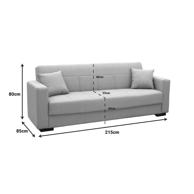 1. Καναπές-κρεβάτι με αποθηκευτικό χώρο τριθέσιος Vox pakoworld ανθρακί ύφασμα 214x82x83εκ