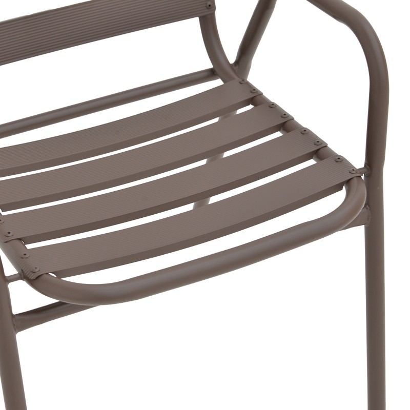 - Σταθερός σκελετός από μέταλλο εξαιρετικής ποιότητας με αντοχή σε φθορά και χρόνο, ενώ τα κομμάτια έδρας και πλάτης είναι κατασκευασμένα από φέτες αλουμινίου. Το μέταλλο παρέχει ανθεκτικότητα και σταθερότητα, ενώ οι φέτες αλουμινίου προσθέτουν ελαφρότητα και μια μοντέρνα αίσθηση στον σχεδιασμό. Η πολυθρόνα αυτή είναι ιδανική για χρήση σε εξωτερικούς χώρους, καθώς η ανθεκτικότητα στις καιρικές συνθήκες του αλουμινίου την καθιστά ανθεκτική σε έκθεση στον ήλιο και την υγρασία.