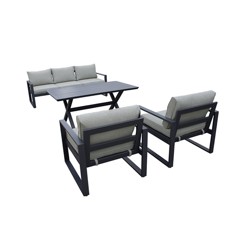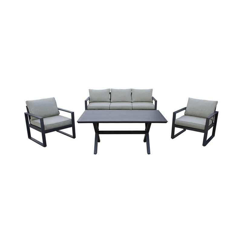JENNIFER 5477 G  Σαλόνι Αλουμινίου / 4 τεμ. Σκελετός: Αλουμινίου Χρώμα Αλουμινίου: Ανθρακί Μαξιλάρι καθίσματος: 11cm, Sand ● Καναπές 3θέσιος Αλουμινίου Διάσταση: Μ201xΠ077xΥ073cm ● Πολυθρόνα Αλουμινίου Διάσταση: Μ075xΠ077xΥ073cm ● Τραπέζι Αλουμινίου Διάσταση: Μ150xΠ086xΥ066cm Επιφάνεια τραπεζιού: Αλουμινίου