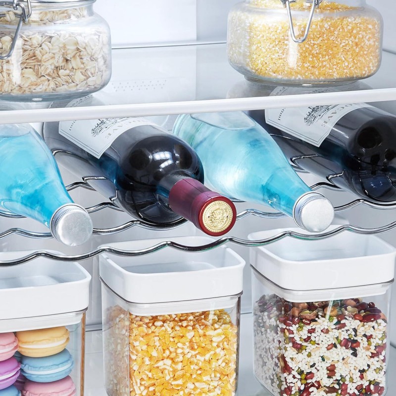 - Μεγάλη φρουτολεκάνη, ειδικό ράφι για μπουκάλια, 4 γυάλινα ράφια