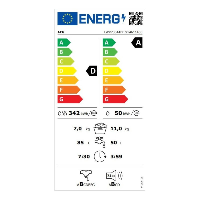 - Προγράμματα: Eco 40-60, Βαμβακερά, Συνθετικά, Ευαίσθητα, Μάλλινα/Πλύσιμο στο χέρι, Outdoor, Καθαρισμός συσκευής, Quick 20 Wash&Dry 60, Mixload, Hygiene, Ξέβγαλμα, Στύψιμο / Άντληση