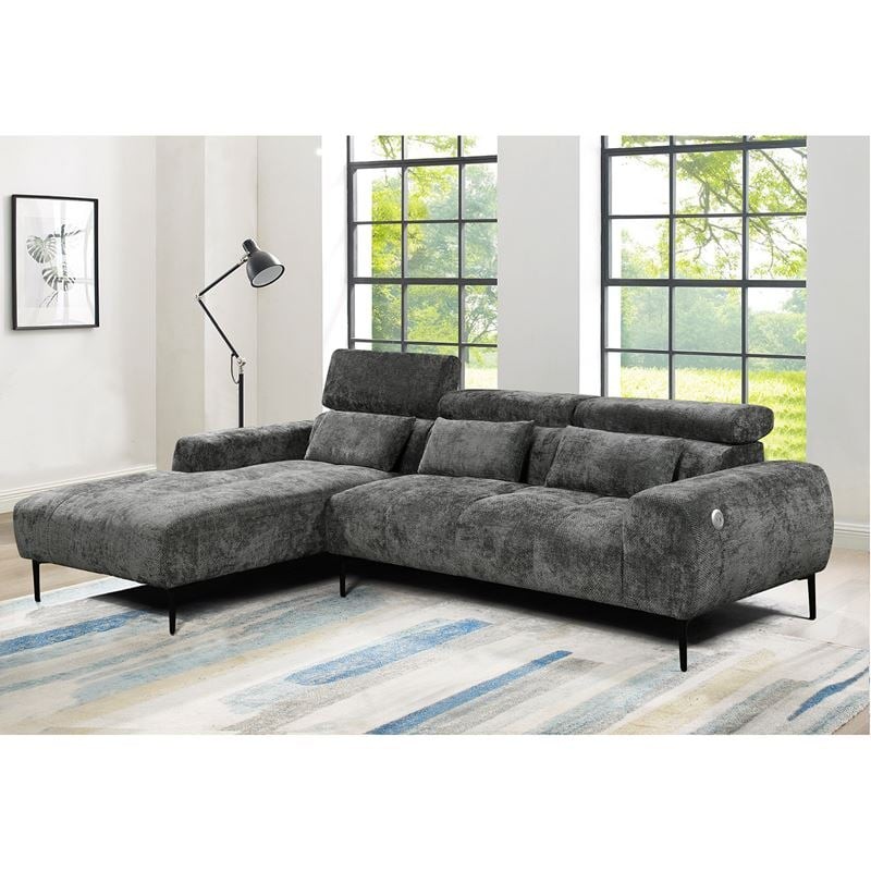 Ε9504,11 ELORA Καναπές Σαλονιού Δεξιά Γωνία, Ανακλινόμενα Κεφαλάρια, Ύφασμα Γκρι