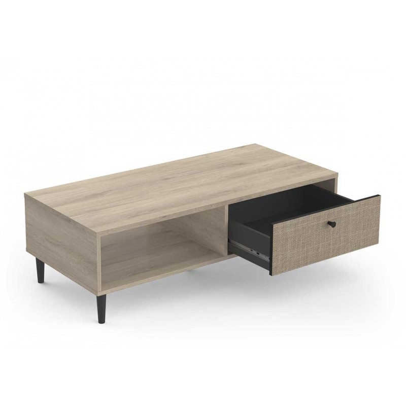 Τραπεζάκι σαλονιού Saigon σε κομψό χρώμα Kronberg Oak με μαύρα πόδια, που συνδυάζει μοντέρνο design και πρακτικότητα. Με διαστάσεις 111x50εκ. και ύψος 38εκ., ταιριάζει ιδανικά σε κάθε σαλόνι προσφέροντας άνεση και στυλ. Διαθέτει ένα συρτάρι και έναν ανοιχτό χώρο για εύκολη αποθήκευση και οργάνωση. Κατασκευάζεται στη Γαλλία με υψηλής ποιότητας υλικά, αποτελώντας μια αξιόπιστη και κομψή επιλογή για τη διακόσμηση του χώρου σας.