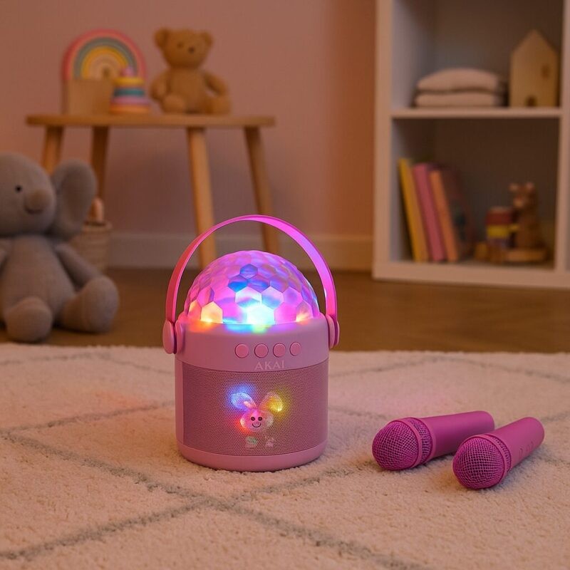 Διασκέδαση για μικρούς τραγουδιστές! Το JoyBox Kids της AKAI φέρνει το karaoke στο παιδικό δωμάτιο με πολύχρωμο φωτισμό RGB, 2 ασύρματα μικρόφωνα και Bluetooth 6.0 για εύκολη αναπαραγωγή από κινητό ή tablet. Το συμπαγές μέγεθος και η εργονομική λαβή το κάνουν ιδανικό για πάρτι, γενέθλια και παιχνίδι στο σπίτι.