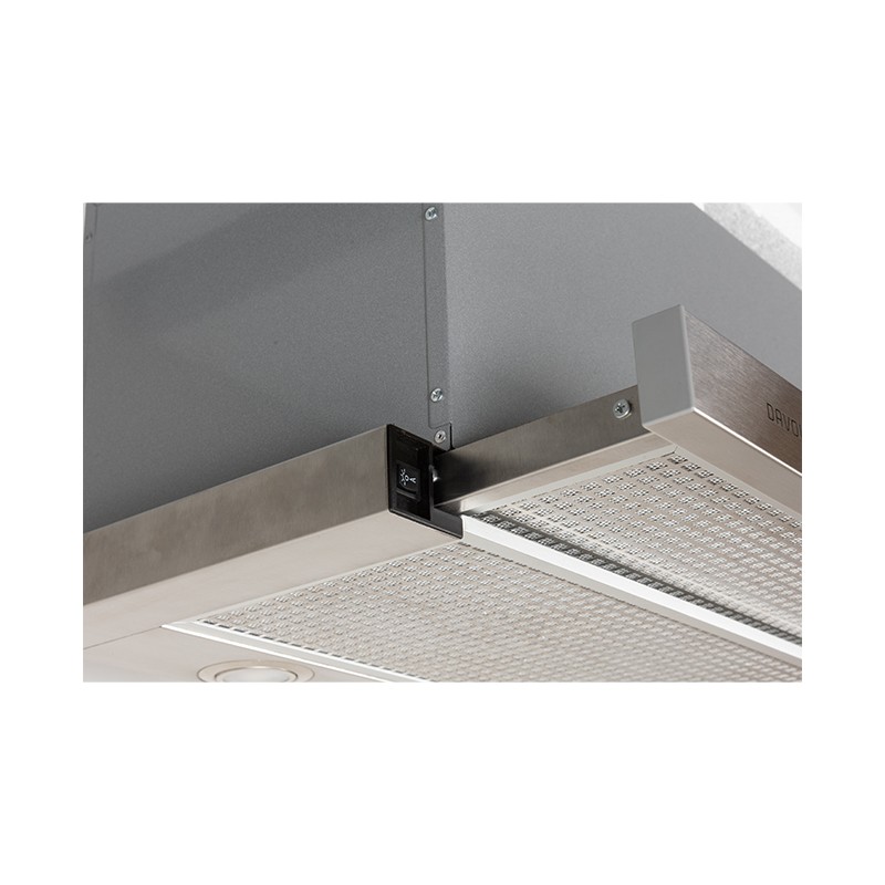 Ο Davoline IOS ULTRA 60 IX είναι σχεδιασμένος για τοποθέτηση σε ντουλάπι, με συρόμενο τμήμα που περιέχει τα φίλτρα, εξοικονομώντας χώρο και διατηρώντας καθαρή την κουζίνα σου. Το Inox φινίρισμα προσφέρει κομψότητα και αντοχή στον χρόνο, ενώ η συμπαγής διάσταση 60x43,2 cm ταιριάζει εύκολα σε κάθε κουζίνα.