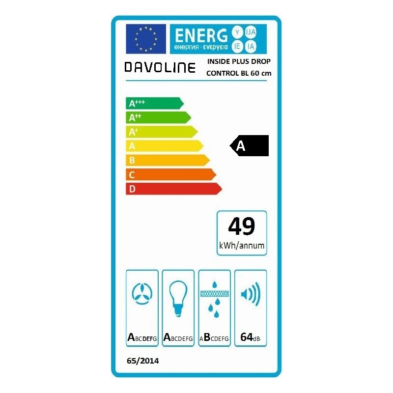 Εντοιχιζόμενος απορροφητήρας Davoline Inside Plus Drop Control 60 με αισθητήρες υγρασίας και θερμοκρασίας για αυτόματη ρύθμιση στο καταλληλότερο επίπεδο απορρόφησης.