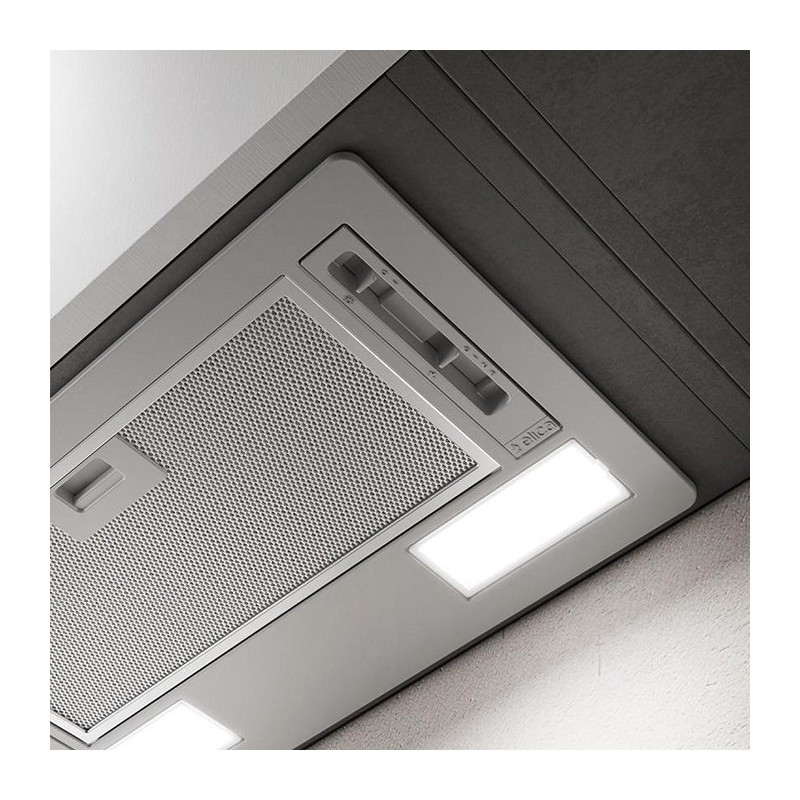 Ο απορροφητήρας της εταιρείας Elica είναι εντοιχιζόμενος. Τοποθετείται σε ντουλάπια με τέτοιο τρόπο, ώστε να είναι ορατή μόνο η κάτω επιφάνειά του.