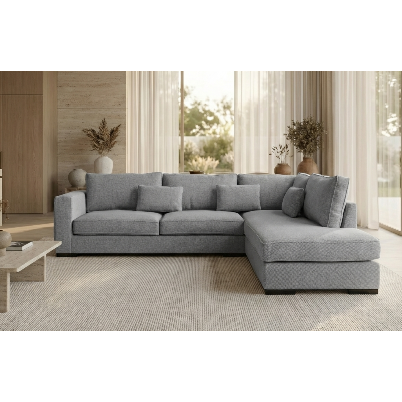 Ο γωνιακός καναπές Brussels είναι η ιδανική πρόταση για μεγάλους χώρους και οικογένειες που αναζητούν άνεση και στυλ. Με διαστάσεις 303x228εκ. και ύψος 86εκ., προσφέρει πλούσιο κάθισμα και μοντέρνα αισθητική. Η γωνιά του καναπέ είναι δεξιά. Είναι επενδυμένος με υψηλής ποιότητας ύφασμα σε γκρι ανοιχτό χρώμα, που ταιριάζει εύκολα σε κάθε διακόσμηση και προσφέρει διαχρονική κομψότητα. Ο καναπές Brussels συνδυάζει λειτουργικότητα και εργονομία, αποτελώντας ιδανική επιλογή για το σαλόνι σας. Αν ψάχνετε για γωνιακό καναπέ υφασμάτινο σε γκρι απόχρωση, ο Brussels θα καλύψει απόλυτα τις ανάγκες σας με στιλ και άνεση.