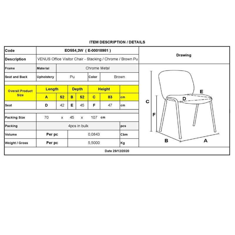 ΕΟ554,3 VENUS Καρέκλα Γραφείου Επισκέπτη, Στοιβαζόμενη Μέταλλο Χρώμιο, Pu Καφέ