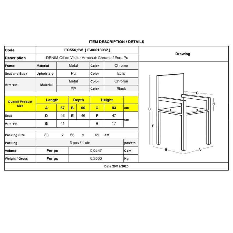 Διαστάσεις: 57x60x83cm Βάρος: 5.70000 Όγκος: 0.05560 Διαστάσεις Κιβωτιών: 80x57x61