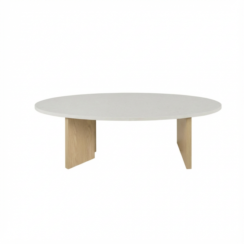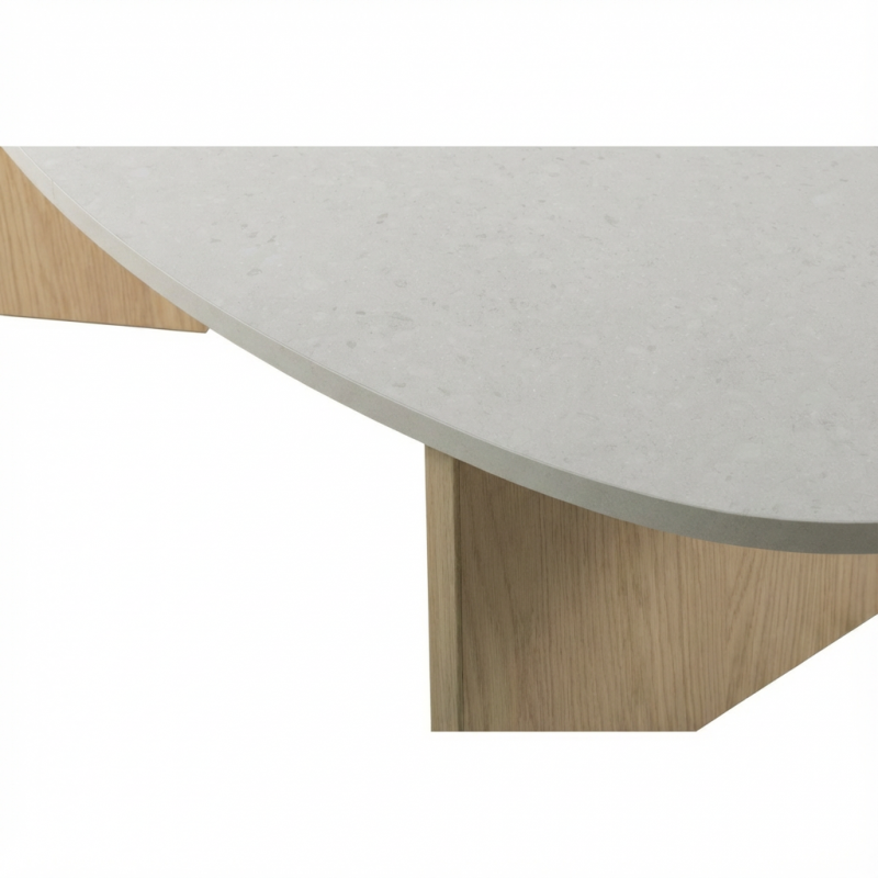 Το τραπεζάκι σαλονιού Solena ακολουθεί τις τελευταίες τάσεις του σύγχρονου design, με επιμήκη οβάλ γραμμή και κομψές καμπύλες που αναβαθμίζουν την αισθητική του σαλονιού. Με μήκος 136 εκ., αποτελεί ιδανική επιλογή για συνδυασμό με μεγάλο ή μακρύ καναπέ, προσφέροντας άνεση και πρακτικότητα στην καθημερινή χρήση. Το επάνω μέρος είναι κατασκευασμένο από μελαμίνη με όψη ορυκτού υλικού ( mineral ) , πάχους 22 mm, με προστατευτικά τελειώματα ABS, εξασφαλίζοντας υψηλή αντοχή σε φθορές και χτυπήματα. Το τραπεζάκι στηρίζεται σε 3 στιβαρά πόδια πάχους 35 mm, προσφέροντας άριστη σταθερότητα. Το τραπεζάκι σαλονιού Solena κατασκευάζεται στη Γαλλία.