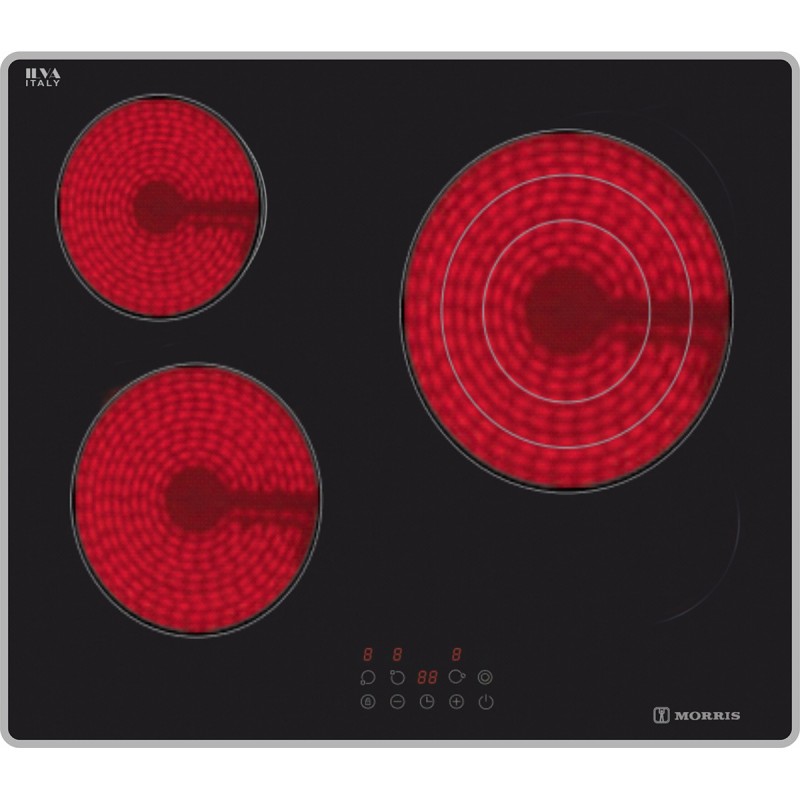 Η κεραμική εστία Morris με πλαίσιο INOX συνδυάζει στυλ, ανθεκτικότητα και ακρίβεια στο μαγείρεμα. Με 3 ζώνες μαγειρέματος9 επίπεδα ισχύος και χρονόμετρο 99 λεπτών, προσαρμόζεται σε κάθε συνταγή και ανάγκη.