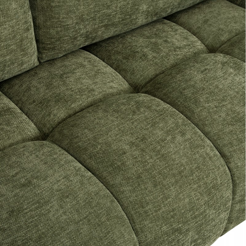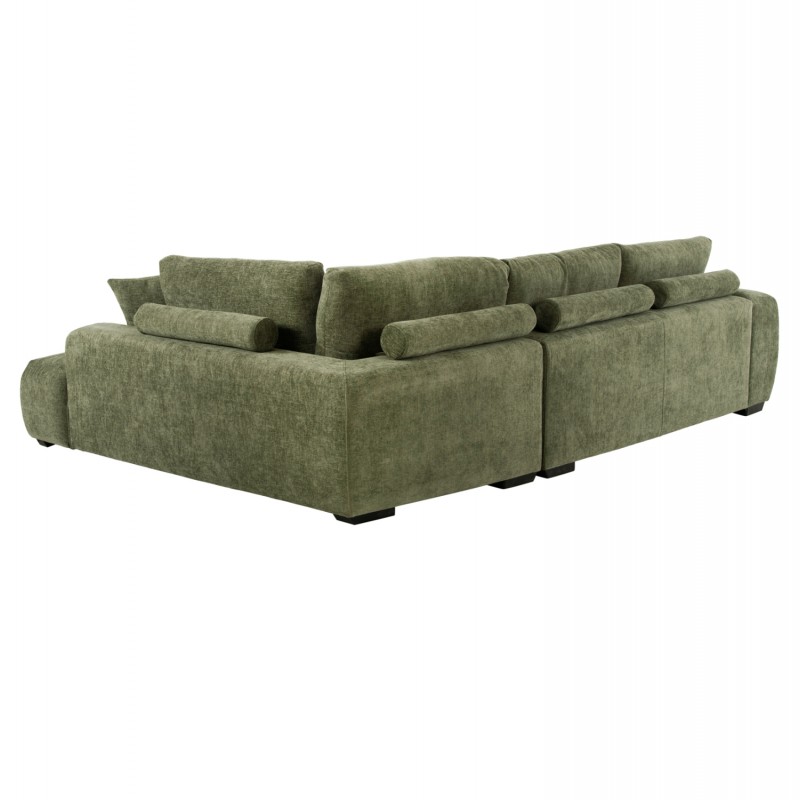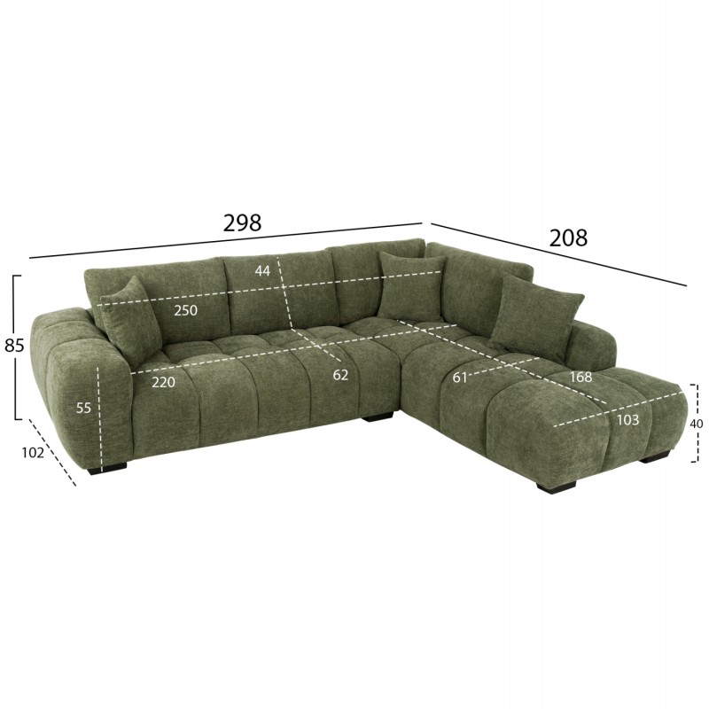 Σας παρουσιάζουμε τον COVEN, έναν υπέροχο μεγάλο καναπέ σε διαμόρφωση ΔΕΞΙΑΣ γωνίας (όπως τον κοιτάς) επενδυμένο με ποιοτικό ύφασμα σε ΠΡΑΣΙΝΟ χρώμα. Ξεκινώντας από το design, ο καναπές φτάνει μέχρι πολύ χαμηλά σε στυλ «ποδιάς» και διαθέτει φαρδιά χαμηλά πόδια-βάσεις σε μαύρο χρώμα. Τα μπράτσα είναι εντυπωσιακά φαρδιά, ενώ η επένδυση είναι σε στυλ καπιτονέ με τις έντονες ραφές! Το κομμάτι που σχηματίζει την γωνία είναι ίδιας αισθητικής και ενώνεται με τον κυρίως καναπέ με κατακόρυφους αναρτήρες πάνελ. Η πλάτη είναι χαμηλή και διαθέτει 4 μαξιλάρια πλάτης με «καραμέλες»(μακρόστενα κυλινδρικά μαξιλάρια) στο πίσω μέρος τους για καλύτερη στήριξη, αλλά και 3 μικρότερα διακοσμητικά μαξιλαράκια. Το κάθισμα διαθέτει γεμίσματα αφρού μεσαίας σκληρότητας σε συνδυασμό με ελατήρια pocket springs, προσφέροντας απαράμιλλη άνεση. Και φυσικά, σας προσφέρουμε αυτόν τον καναπέ με εγγύηση σκελετού 3 ετών!
