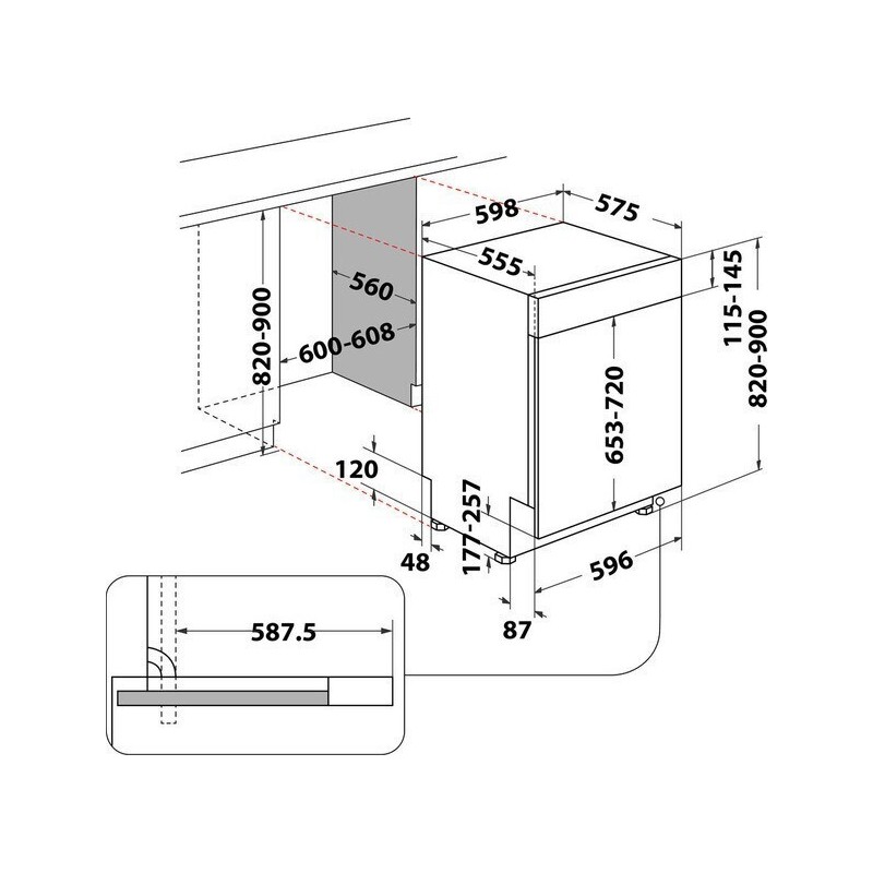 Whirlpool WBC 3C34 PF X Εντοιχιζόμενο Πλυντήριο Πιάτων για 14 Σερβίτσια 59.8cm Inox D