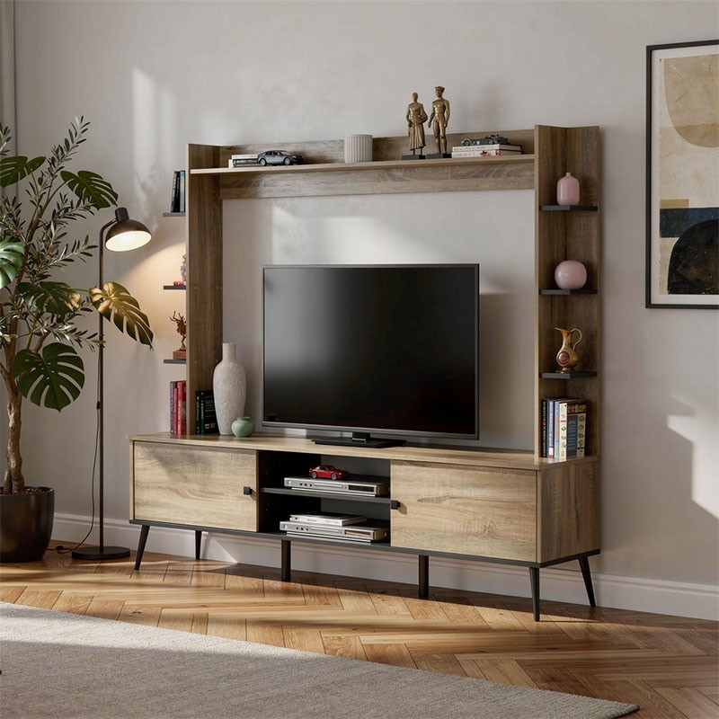 Αναβαθμίστε το σαλόνι σας με αυτό το εντυπωσιακό και λειτουργικό σύνθετο, ιδανικό για να φιλοξενήσει την τηλεόρασή σας, να οργανώσει τις συσκευές πολυμέσων και να προσφέρει άφθονο αποθηκευτικό και εκθεσιακό χώρο. Ο σύγχρονος σχεδιασμός του, το καθιστά ένα κεντρικό και πρακτικό κομμάτι στο σπίτι σας.
