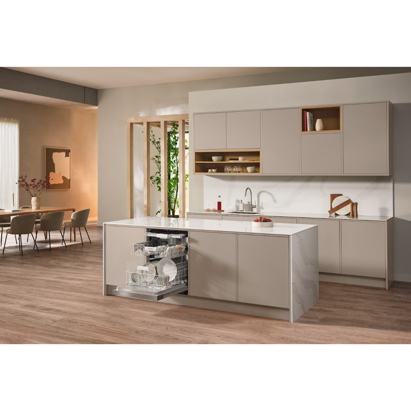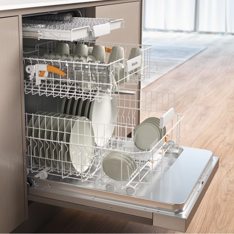 Εντοιχιζόμενο πλυντήριο πιάτων της Miele που έχει σχεδιαστεί για να ικανοποιεί τις ανάγκες μιας πολυμελούς οικογένειας, με χωρητικότητα για 14 σερβίτσια. Η τοποθέτησή του είναι ιδανική ανάμεσα στα ντουλάπια της κουζίνας σας, προσφέροντας ομοιόμορφη εμφάνιση καθώς η πόρτα μπορεί να επενδυθεί στο υλικό τους. Οι δυνατότητες ελέγχου είναι προσβάσιμες μέσω των πλήκτρων που βρίσκονται στην επιφάνεια του προϊόντος.