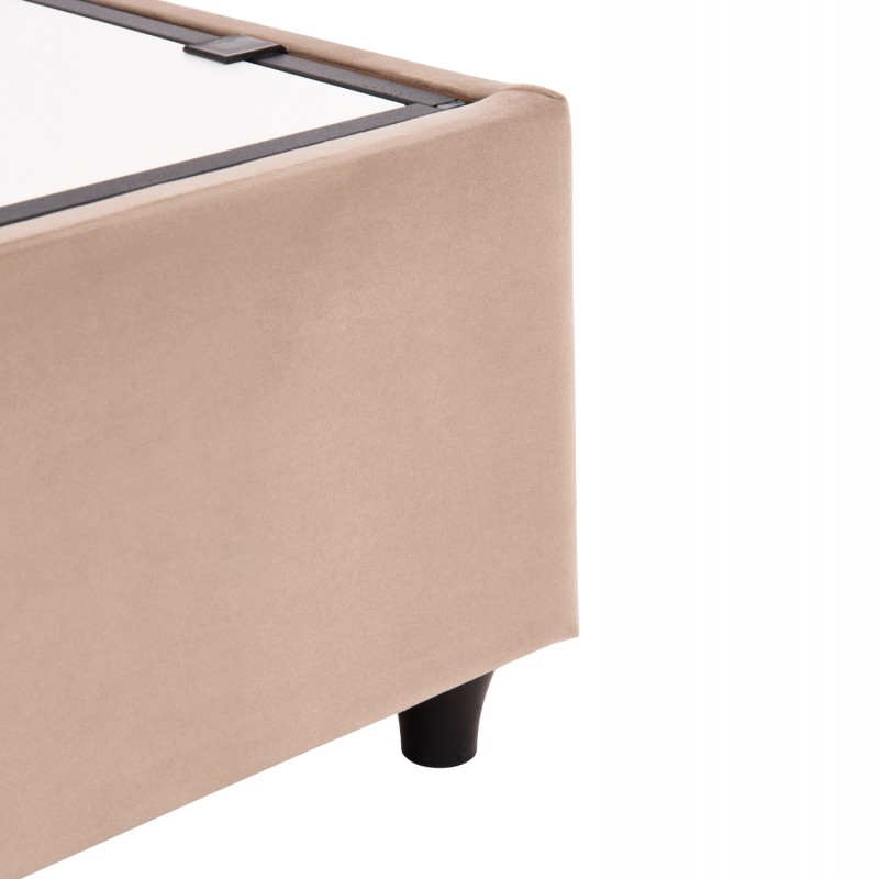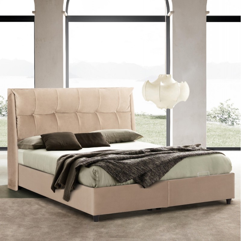 Η επένδυση έχει γίνει εξολοκλήρου από βελούδινο ύφασμα, χαρίζοντας ελκυστική όψη και μια εκλεπτυσμένη γοητεία στην διακόσμηση του υπνοδωματίου. Πρόκειται για ένα ύφασμα απαλό, χαλαρό, απολαυστικό και φινετσάτο που είναι αδύνατον να του αντισταθεί κάποιος. Το θετικό είναι ότι μπορεί να εναρμονιστεί εύκολα με κάθε είδος διακόσμησης, προσδίδοντας στο χώρο φινέτσα και καλαισθησία.
