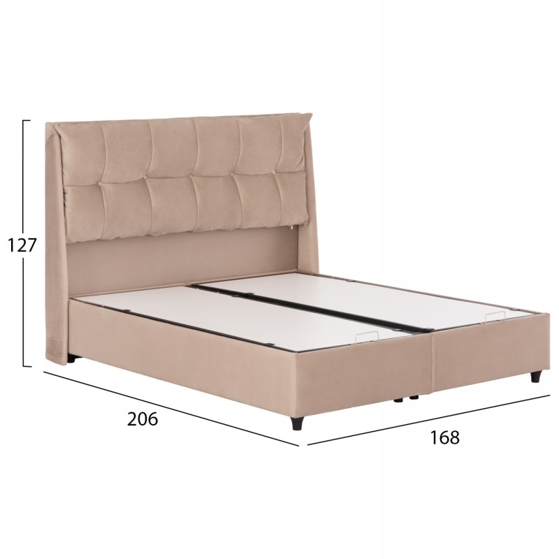 Το κρεβάτι DREAMLET είναι καινούργια προσθήκη στην γκάμα μας. Είναι επενδυμένο με ΜΠΕΖ βελούδο και ειδικά το κεφαλάρι έχει όμορφο καπιτονέ σχέδιο με το βελούδινο ύφασμα. Όμως, το κύριο χαρακτηριστικό αυτού του κρεβατιού είναι ότι δεν ακολουθεί την κλασική κατασκευή με τις τάβλες του σομιέ για την στήριξη του στρώματος, αλλά αντίθετα αποτελείται από μια συνεχόμενη επιφάνεια (2 μοριοσανίδες), πάνω στην οποία τοποθετείται το στρώμα. Επιπλέον, η κάθε επιφάνεια από μοριοσανίδα ανασηκώνεται με μεταλλικό μηχανισμό ασφαλείας και μεταλλικές λαβές προσφέροντας έναν μεγάλο αποθηκευτικό χώρο. Σε διαστάσεις στρώματος 160x200 εκ. θα χωρέσει κάθε σας όνειρο!