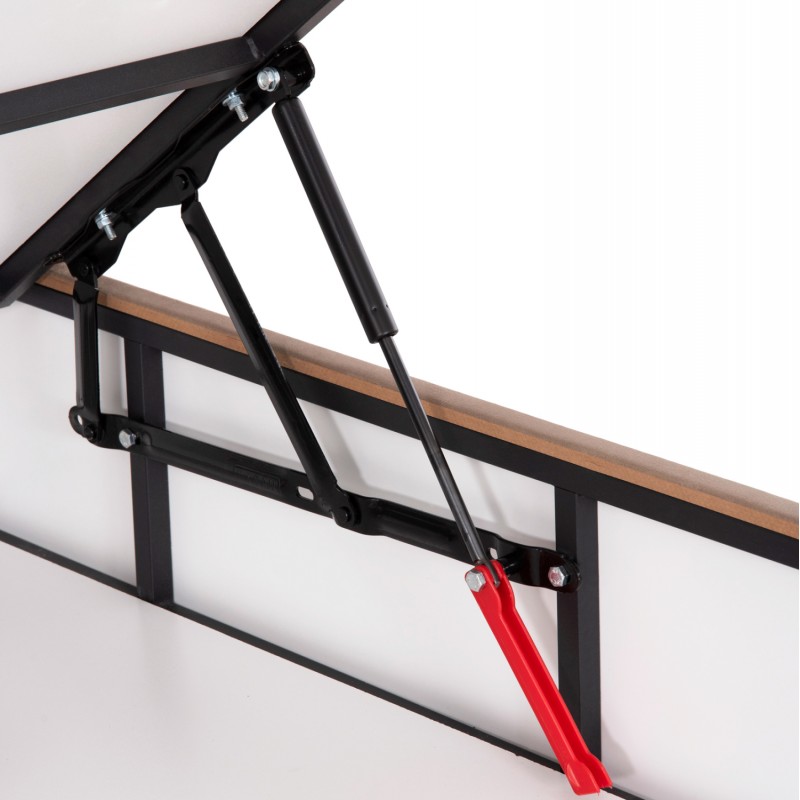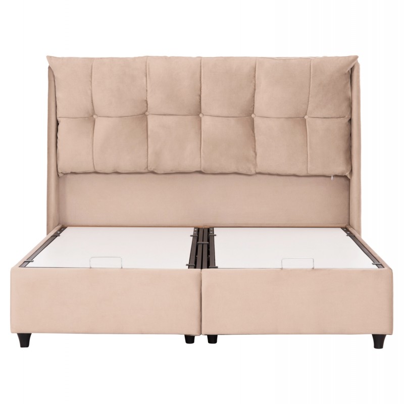 Ο σκελετός του κρεβατιού είναι ξύλινος, πράγμα που καθιστά το κρεβάτι εξαιρετικά στιβαρό και ανθεκτικό, χάρη και στην ενισχυμένη κατασκευή του. Ο μηχανισμός αποθήκευσης είναι μεταλλικός για αντοχή στο βάρος και στον χρόνο.