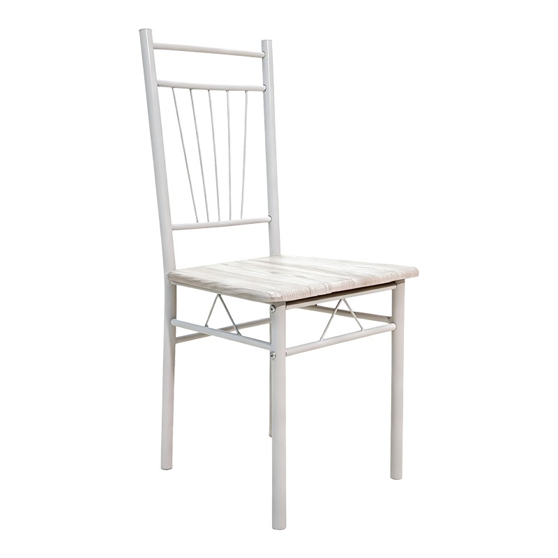 Στήριξη σε ενισχυμένο μεταλλικό σκελετό που καταλήγει σε τέσσερα στρόγγυλα μεταλλικά πόδια, ηλεκτροστατικής βαφής λευκoύ glossy χρώματος.