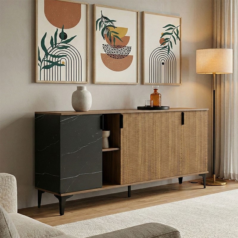 O μπουφές Riba είναι σχεδιασμένος για να προσφέρει μέγιστη ευελιξία και οργάνωση, χωρίς συμβιβασμούς στην αισθητική. Με τον αρμονικό συνδυασμό διαφορετικών υφών και χρωμάτων, αποτελεί ένα κομψό κεντρικό έπιπλο που ικανοποιεί κάθε ανάγκη αποθήκευσης.
