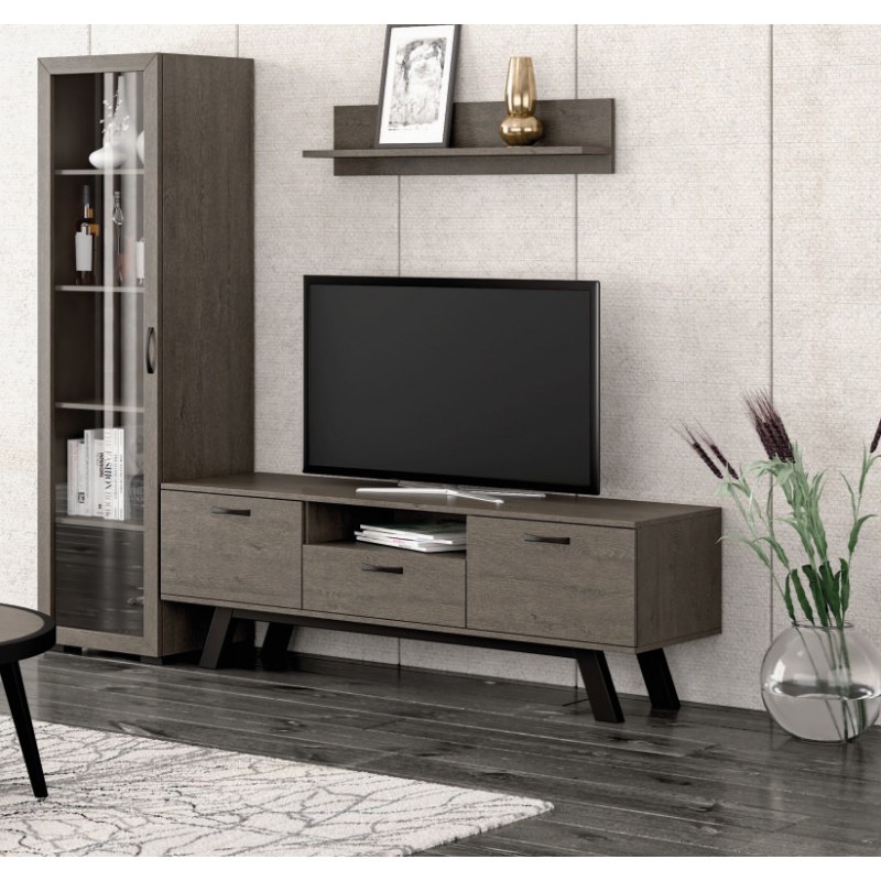 Σετ σύνθετο N30 με Βιτρίνα και ράφι, χρώματος Σκουρο Δρύς