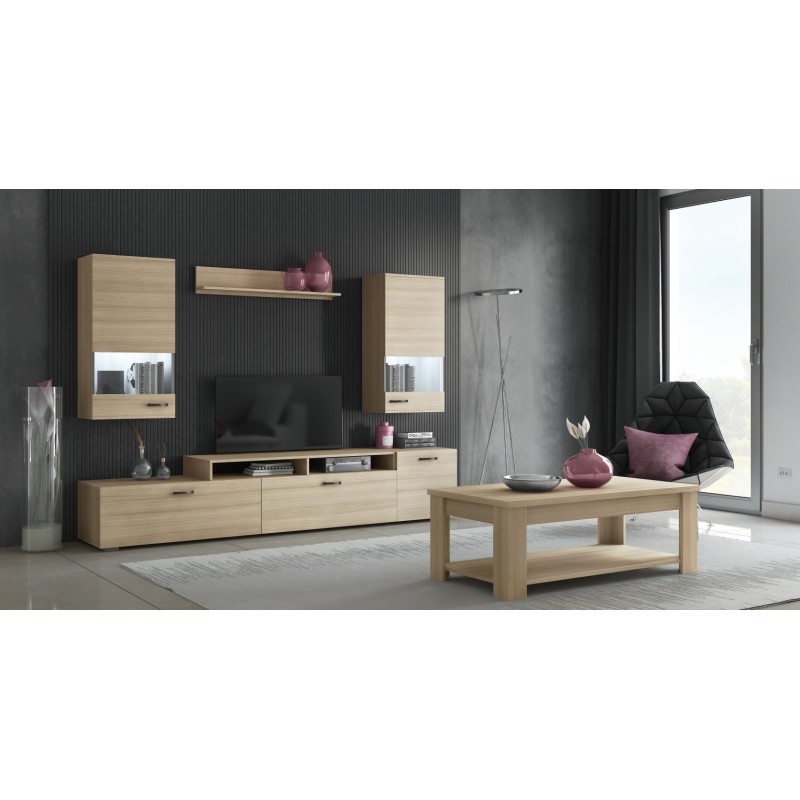 Σετ σύνθετο σαλονιού N27 ,με 2 Βιτρίνες , τρία κουτιά βάσης, μία επιπρόσθετη βάση tv και 1 ράφι + Τραπεζάκι σαλονιού N10 χρώματος Λάττε.