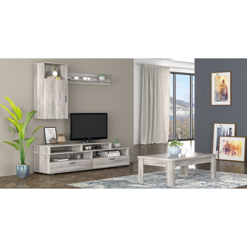 Σετ σύνθετο N31 με έπιπλο tv ,ράφι, κουτί κρεμαστό+Τραπεζάκι σαλονιού N2 χρώματος Σταχτί
